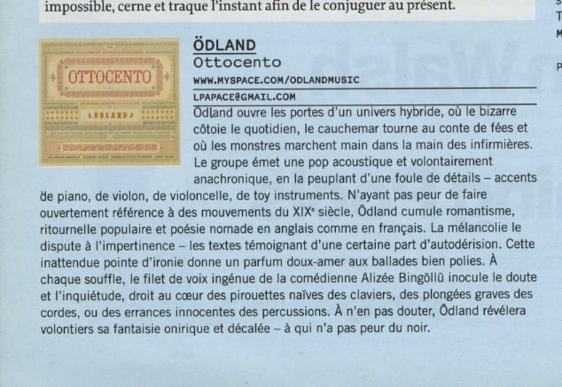 En 2008, j’ai fondé Ödland, un groupe musical où je crée un univers sonore mystérieux, mélancolique, souvent sombre, parfois teinté d’humour.