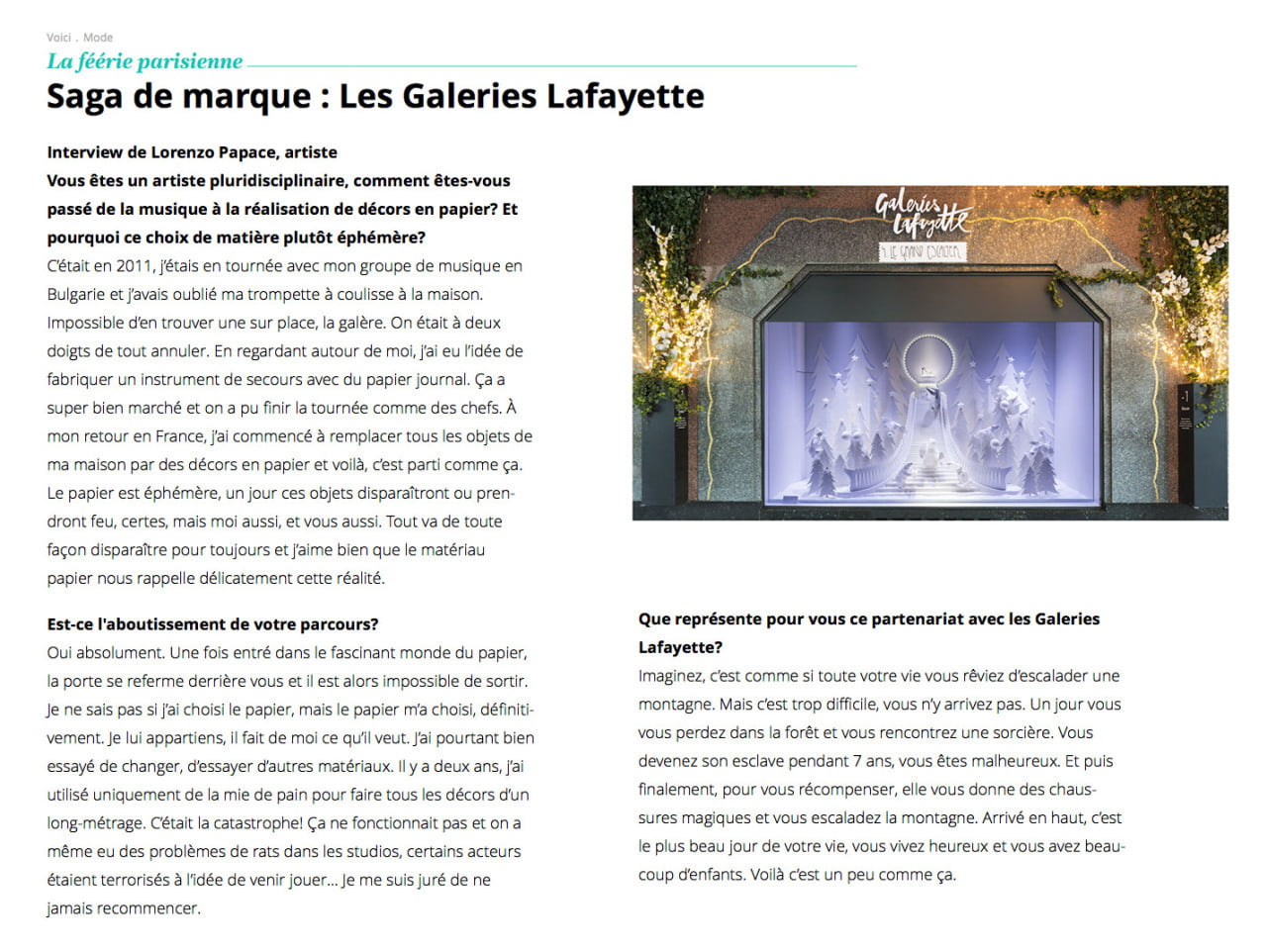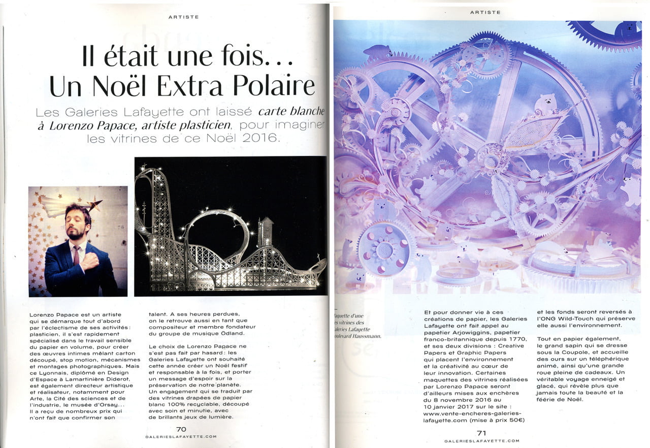 J’ai également collaboré avec des institutions et marques telles que Arte, Hermès, le Musée d’Orsay, Miu Miu, Nike ou les Galeries Lafayette, pour la conception de leurs vitrines de Noël 2016. Mon rôle est de créer des univers sensibles, toujours pensés dans le détail et la cohérence.